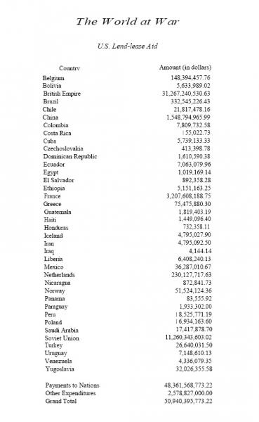 El conjunto de la ayuda ascendió a casi 50.000 millones de dólares, de los que una parte significativa fueron entregas sin ningún pago a cambio. Esta ayuda militar fue esencial para el triunfo de los Aliados en la guerra.