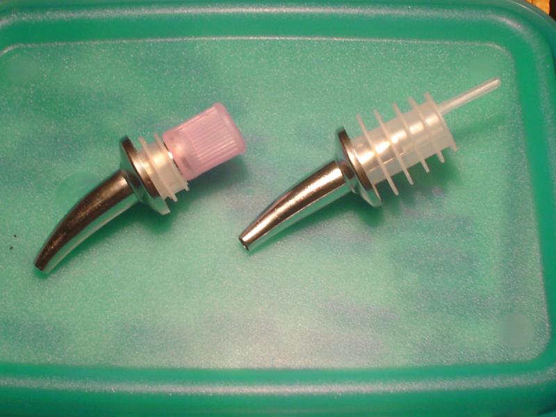 Hoy iba para el campo de tiro y me doy cuenta que me falta el embudo para cargar la pólvora. Paro en una ferretería y me compré este artilugio para verter líquidos. Con muy leves modificaciones, le adapté uno de los tapones de los tubos de carga, y ya está.