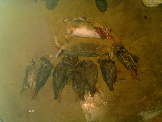 Viento criminal, agua a mares, frío respetable y perdices duras de pelar. Aún u todo hicimos los 3 cupos, 7 percices y 2 liebres todas ellas pasadas por agua como se puede ver en las fotos.