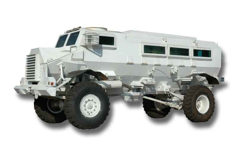Los chasis están fabricados con sus bajos en forma de V, con lo cual la onda expansiva se “abre” hacia los lados. La estructura modular que forma el habitáculo, suele estar reforzada con diversas planchas e incluso blindajes tipo “sándwich” como el de los carros, siendo el del interior del habitáculo del tipo anti fragmentación, para evitar el reflejo de la onda expansiva hacia dentro.