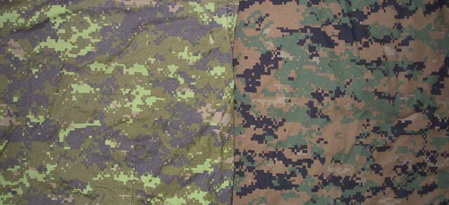 comparacion, entre una porcion de camuflaje aleman y una del usado por los daneces,inspirado en el primero.