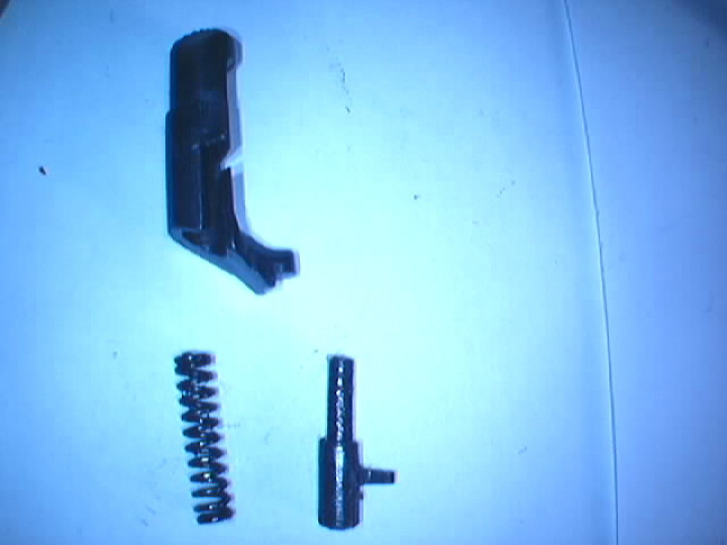 Tras esto salen de su alojamiento el extractor su muelle los pitones de empuje y el tapón del orificio (este se puede desmontar al sacar el tope de la aguja percutora)
