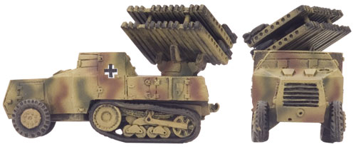 El Mittlerer Schutzenpanzerwagen S307(f)con el citado lanzacohetes multiple de 8 cm R-Viefachwerfer. Basado en semiorugas franceses SOMUA...