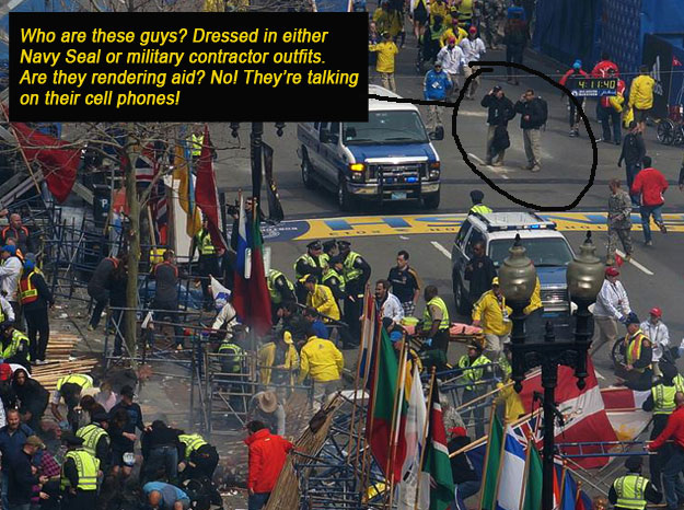 sobre los dos tipos vestidos "S+EGURIDAD" esta clarisimo q han participado en el atentado hay fotos en las q se les ve manipulando un terminal parecido a un movil, ademas de q actuan con total pasimonia, saben lo q va a ocurrir
