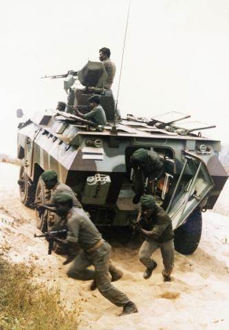el vehiculo es un blindado portapersonal de fabricacion Brasileña EE 11 Urutu