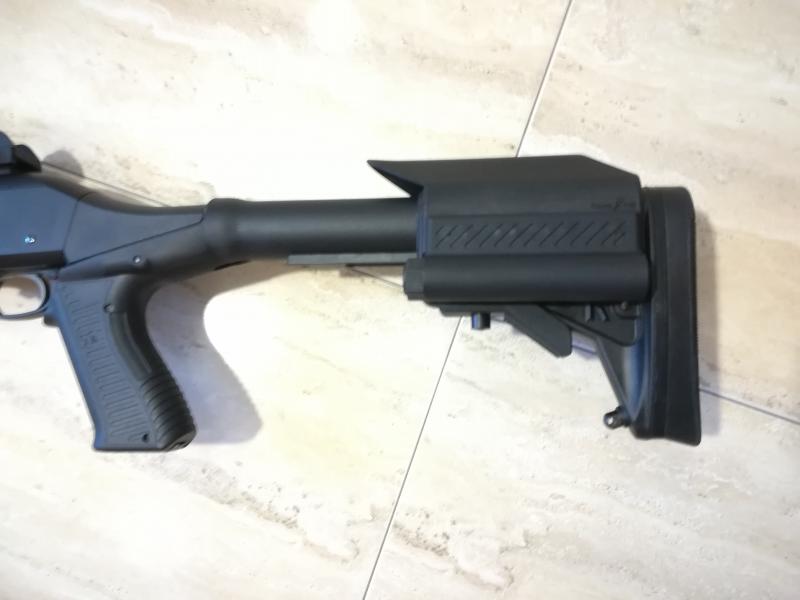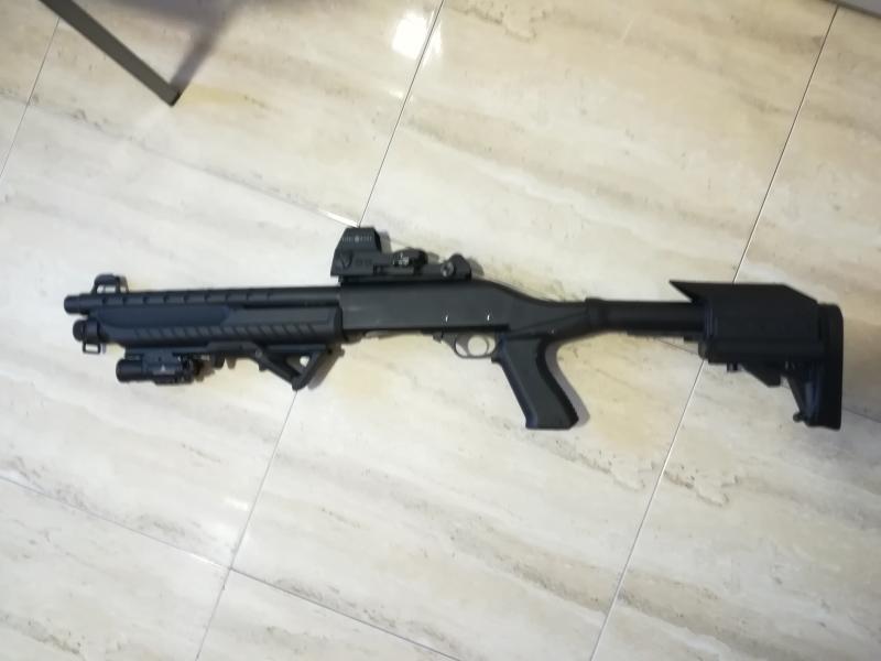 Yo tambien tengo esa escopeta el modelo mas corto, le quité la culata plegable y la dejé solo con el pistolete como uno del foro que hizo fotos de ella, lo que no se si es legal con la ultima modificacion del reglamento de armas.