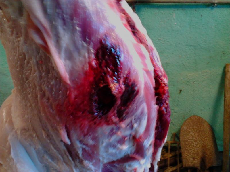 ha salido corriendo como un misil hasta que a 50 m lo han parado con un tiro que le ha triturado el húmero y se ha incrustado en el cerebro cayendo fulminado en el mismísimo sitio.