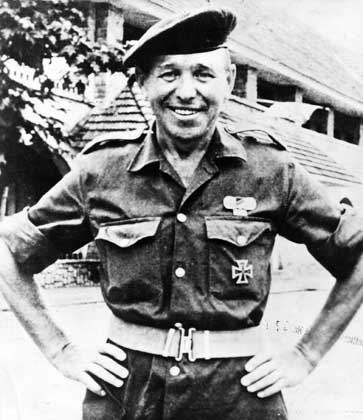 fue oficial con la Wehrmacht, combatiendo en el frente del este...se le denego el ingreso en el bundesvehr, encontro trabajo en empresas petroliferas, limpio minas colocadas por el Afrika Korps, emigro a sudafrica en 1962 y alli le reclutaron como mercenario....y segun parece, aparte de mercenario, hizo algunas peliculas...