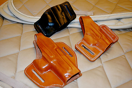 Las de color marron (tanto la bikini como la otra) tienen el enganche superior, el cual es muy rapido de quitar a la vez que desenfundas y te mantiene fija el arma evitando todos estos problemas.