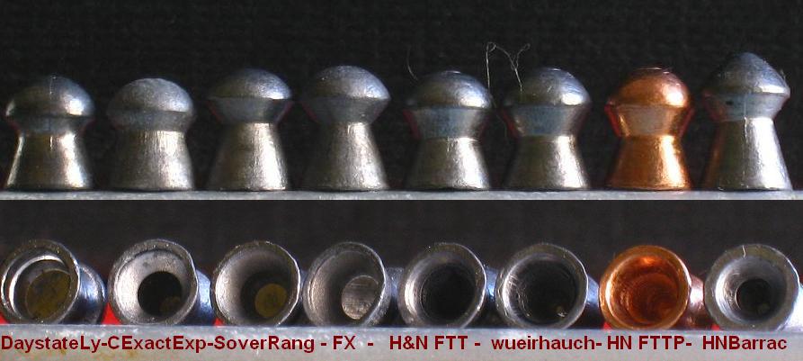 A continuación una foto en la que se ven todos los balines probados con Gamo CFR W: