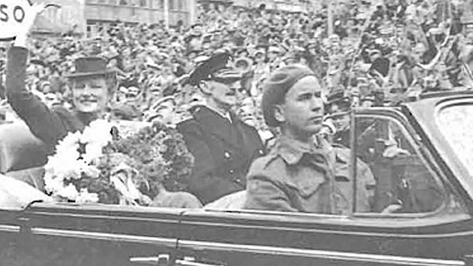 En esta otra foto se puede ver a uno de los comandos del grupo de Max Manus pero esta vez custodiando al Rey Haakon VII con un subfusil que aunque no se aprecia bien podría ser también un M-37/39.