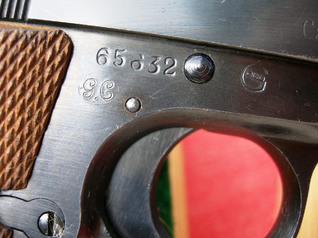 Comentar como curiosidad que existen pistolas Llama I importadas por GECO con el punzón marcado en dos posiciones diferentes, en su lado derecho por delante del número de serie como la de la imagen y la del compañero o marcado en el lado izquierdo en la zona entre el gatillo y la cacha.