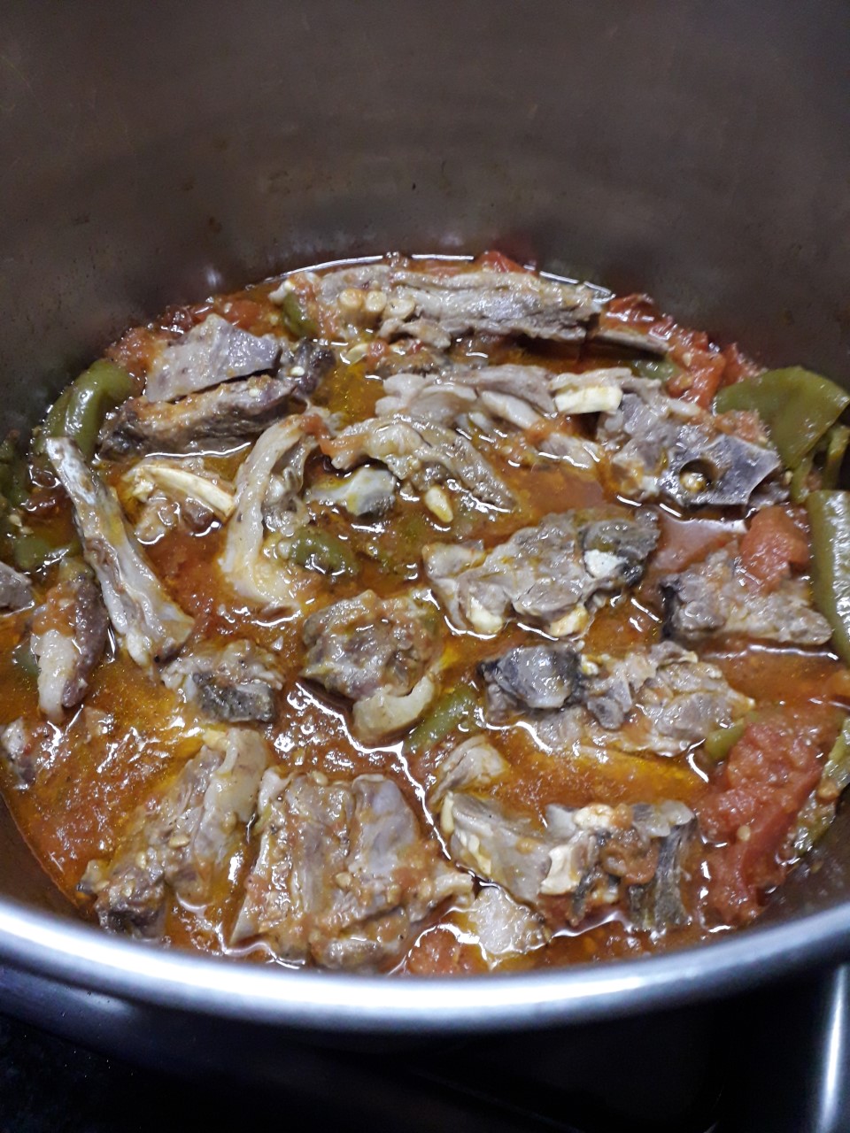 Caldereta de Borrego, que ya decía Cervantes que "es más apreciada la carne de cabrón que la de cabrito y la de carnero que la de cordero". Digo yo, que tal vez los cuernos realcen los sabores...