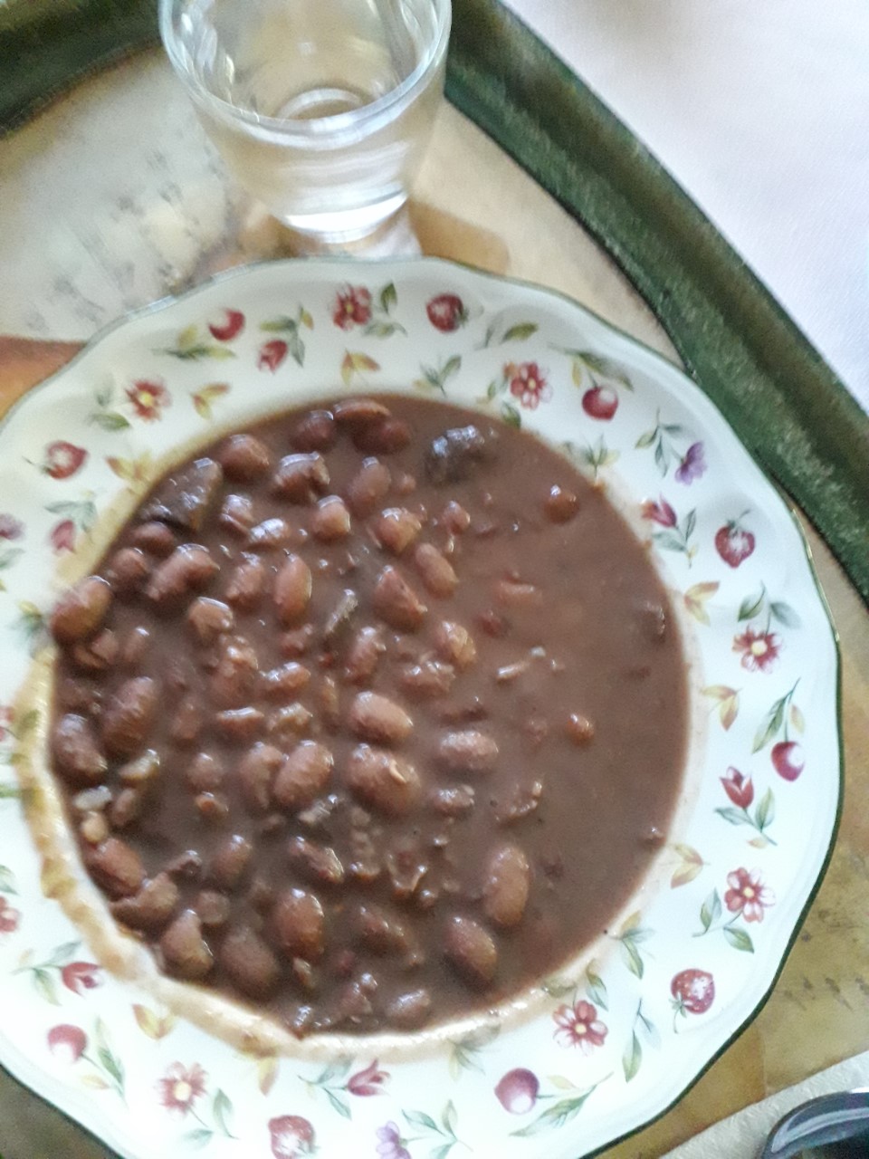 He tenido que llevar vino, Protos 27 porque lentejas con agua dan seguidillas, mi madre se ha tomado un vasito y que estaba rico, ¡toma!, ¿normal ¿no?.