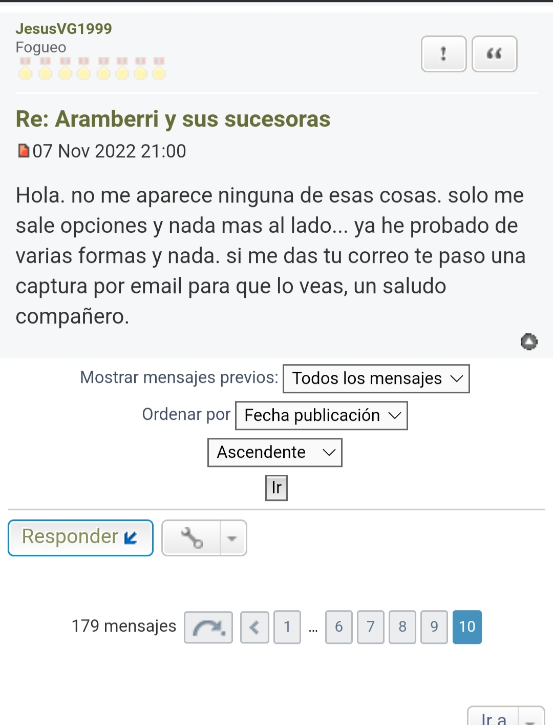 Hola, al lado de opciones no me aparece nada ya he intentado de todas las formas, y me gustaría enseñárselas, sobre todo la aramberri mach 1 y el estado en el que se encuentra.