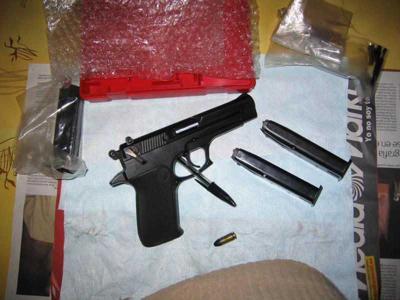 Aquí está la "abuela", el día que llegó a casa procedente de la ya extinta Iparguns. La vieja y noble Star 30M. Una veterana en toda regla que a día de hoy sigue vigente y, cuando el dueño tiene el día medianamente fino, se mide de tú a tú con las jovencitas de tacón de aguja y minifalda que pueblan nuestras canchas. Y mira tú que pese a que tiene años, no le entra nunca la tos. Le puedes dar de comer lo que sea, con más picante o menos, blindada, plomo, tronco-cónica o RN, que no se atraganta nunca. Mecaniza con lo que otras no son capaces y sí, no será tan ergonómica pero... es que le tengo cariño. Será cosa de haber tenido una de dotación unos cuantos años, de estar hecha en purito acero, y de considerarla -yo, otros pensarán distinto- la mejor semiautomática nunca fabricada en España.