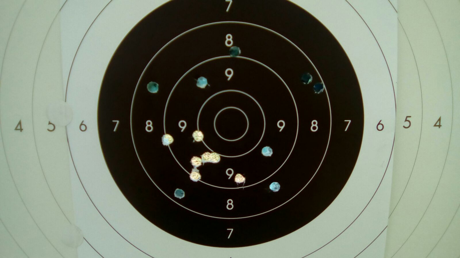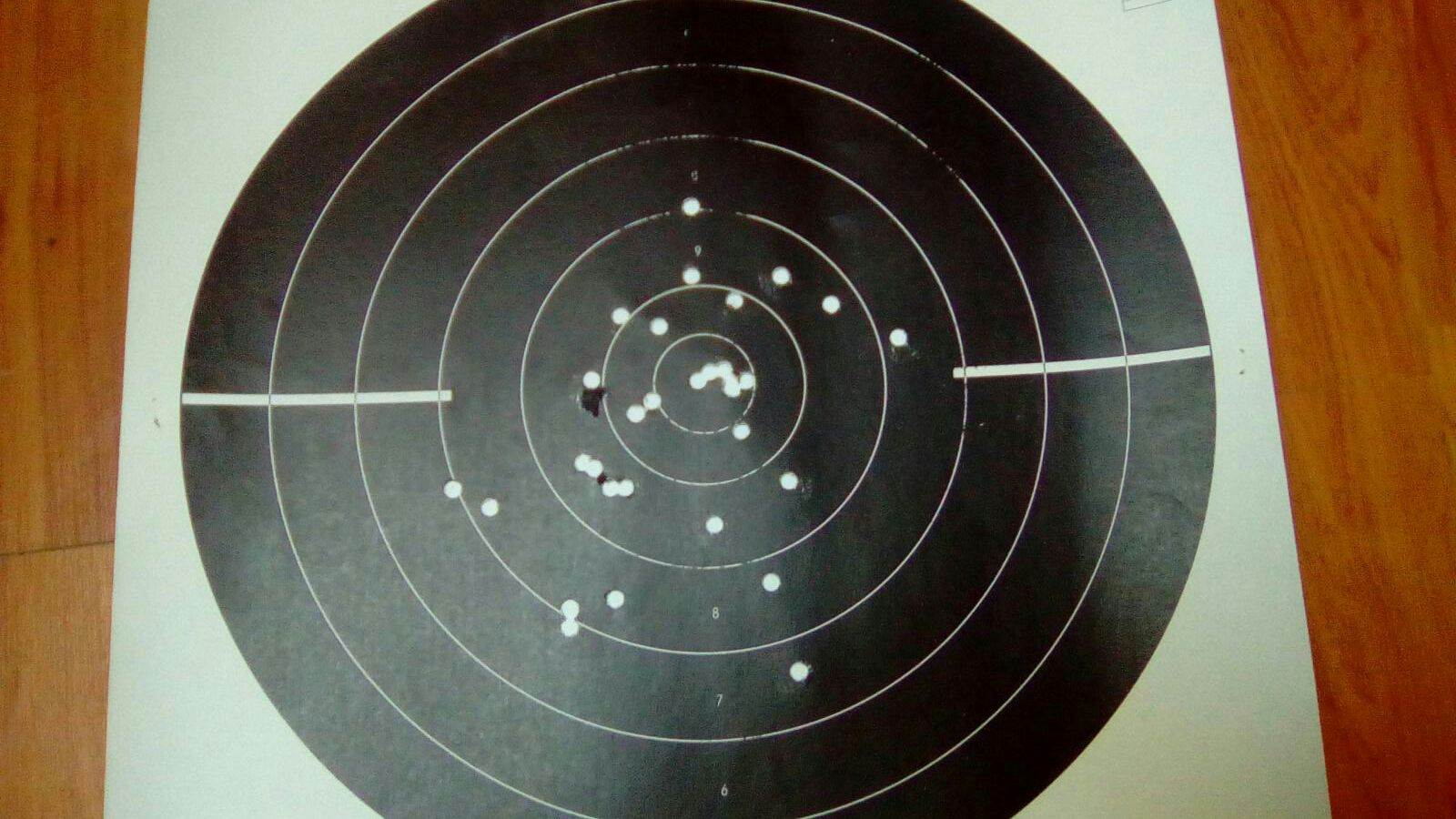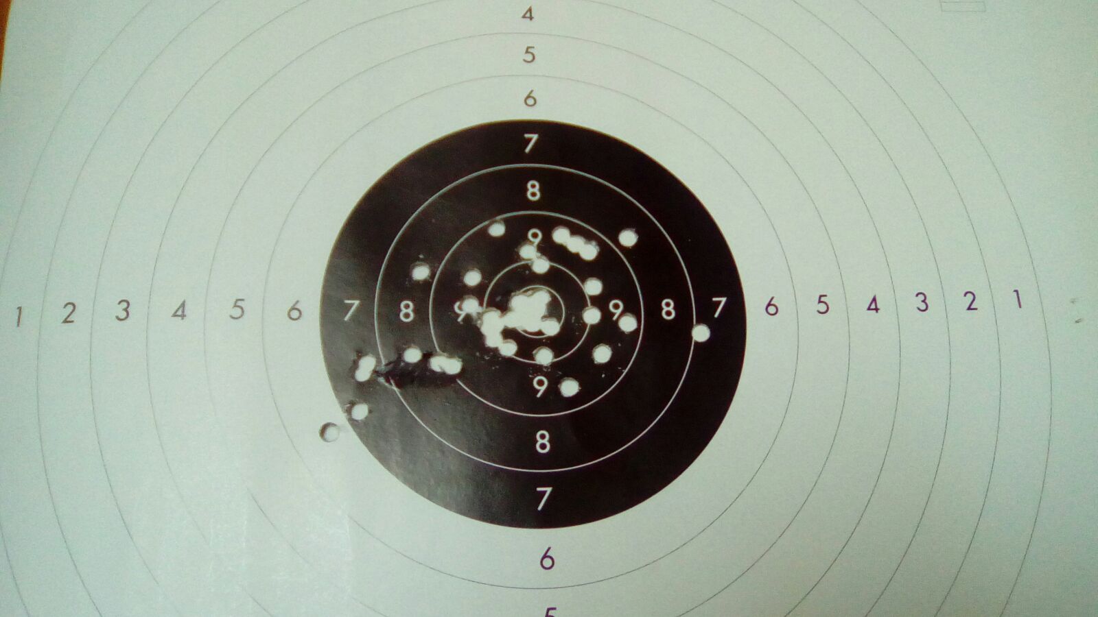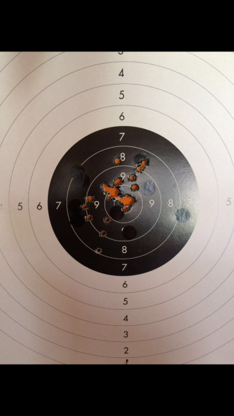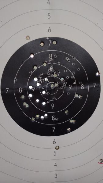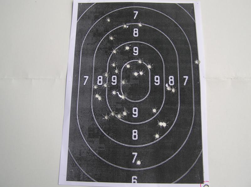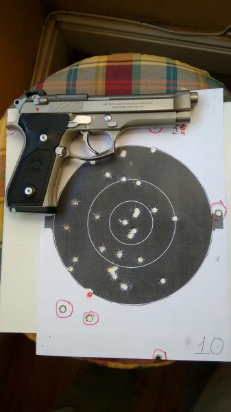 Aunque no se pueda comparar con las pistolas específicas de tiro, ahí va una diana de este mismo martes hecha con una Beretta 92 FS.