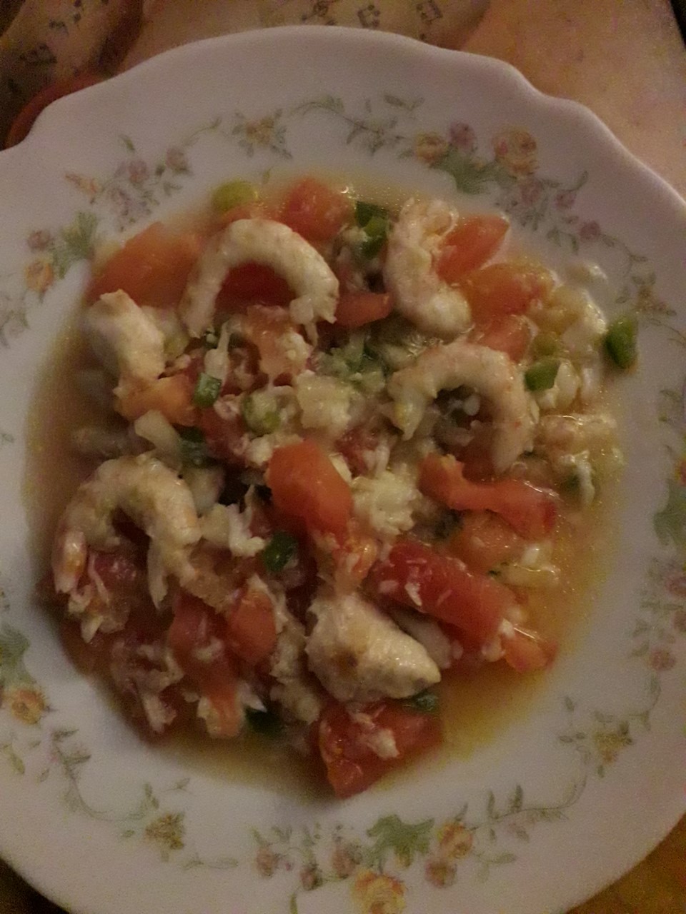El otro día hicimos un frito variado ( pescada de pincho, boquerones, acedias y bacaladillas), con lo que sobró de la pescada y unas gambas blancas se hizo el salpicón que subí.
