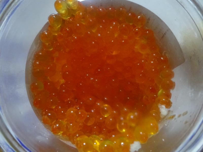 Huevas de trucha para los canapés.