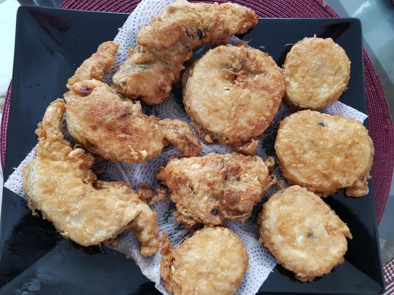 Hoy, pescadilla rebozada con harina de trigo y huevo.