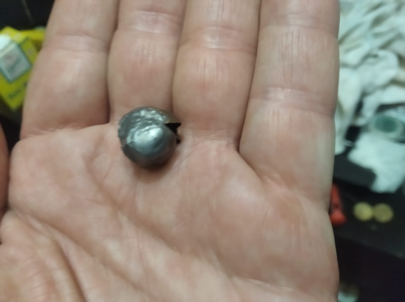 Aver los graficos estan muy bien , pero solo valen para tener una referencia nada mas , son incompletos y la realidad de la caza es otra cosa. Si tienes una partition en calibre 30 e impacta a 400 metros en gel balistico a unos 600M/S , crees que la penetracion sera igual con estos parametros que en un tiro en la escapula de un venado , pues no . Lo mismo que el peso y por ende la DS interfieren , si la partition en vez de 150 grains tiene 180 penetrara lo mismo una que otra en los mismos parametros , pues no. Hablando de la hornady con interlock ; rebuscando entre los archiperres de caza encontre este proyectil que saque de un jabali cazado este invierno . La distancia fue de 15 pasos tiro de escapula , el proyectil estaba entre el tocino y la piel de hombro contrario , la bala peso 140 grains y un diametro maximo de diametro de 16 mm. El calibre un 35 whelen municion Hornady superformance 200 grains de peso , a esa distancia la bala penetro a mas velocidad que el de la sandia de alaska y era un jabali de unos 75 u 80 kilos , no me creo que fuese mas blando que la sandia de 3 o 4 kilos
