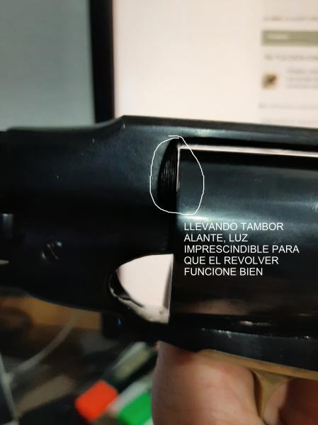 Tiene toda la pinta de que ese revolver ha venido mal ajustado de fabrica (lo que no suele ser del todo raro), las marcas sobre el tambor evidencian que está rozando con el frame del revolver, estoy seguro que además de lo que vemos, te mecaniza fatal y disparando con el debes ayudar al tambor a girar con la mano a la vez que amartillas.