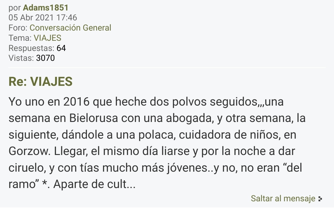 Pues a ver si me dice ud quien “alardea de proezas sexuales”, porque revisado foro entero, no he visto un solo post describiendo tales logros.