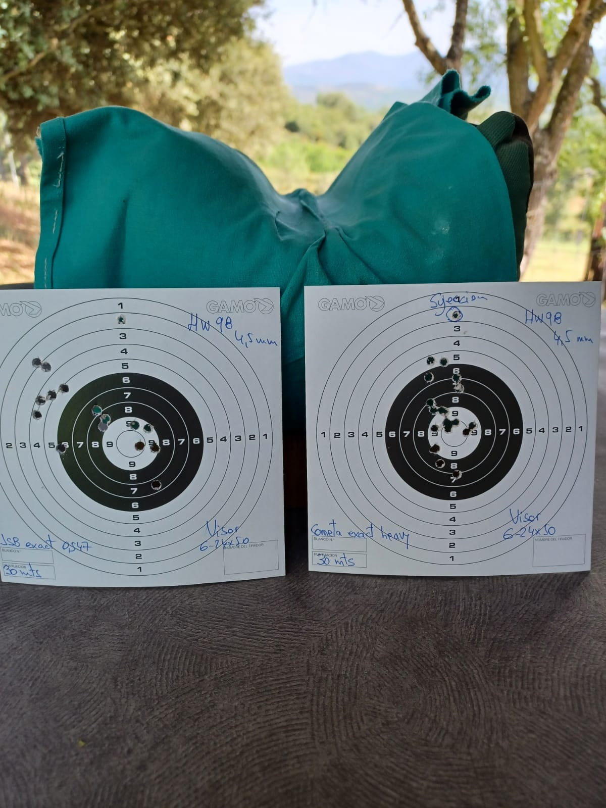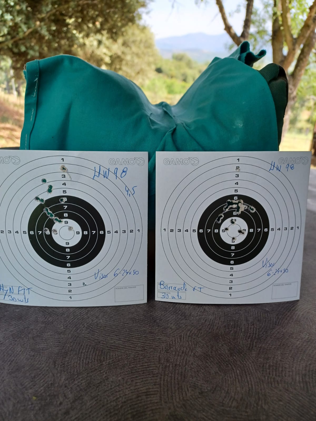 De mi modesta experiencia siempre he hablado y he tenido tanto Cometa cómo Weihrauch.No voy hablar mal de ninguna marca pero nunca pude conseguir con Comenta los grupos que me dio Weihrauch. Tengo un vídeo en Youtube sin cortes de unos 7 minutos de pie con apollo en el techo del coche siete disparos, cinco se cubren con una moneda de 2e y dos salen fuera y eso a más de 55 m ,eso fue con weihrauch 98 de cañon corto en 5,5..Con Cometa nunca he conseguido eso .Puede que me tocó a mí el Ferrari de los Weihrauch :D no lo sé pero cuando veo que en 30 m grupos así de abierto me da a mí qué esa carabina no está muy bien o el tirador un poco desafinado.Digo todo eso para quitarle dudas al nuestro compañero qué compro la Weihrauch 98. Las fotos de última publicación están puesto por David ,qué es uno de los grandes en aire comprimido y no solo en aire comprimido por eso no dudo de que son 100% reales.Yo sigo pensando que esa máquina weihrauch 98 en 4,5 no estaba muy afinada . Saludos a todos. :birra^: