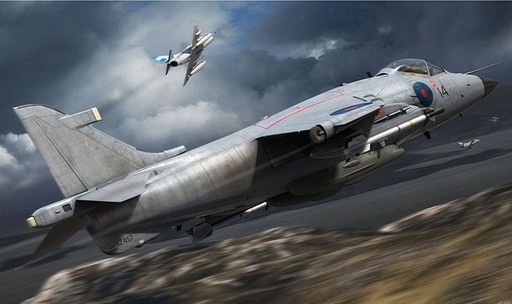 Lo que comentáis de un supuesto enfrentamiento entre Harriers y A-4 como cazas no es en absoluto factible. El A-4 es muy ágil, pero el Harrier lo es en extremo. Sus toberas orientables no solo le permiten el aterrizaje vertical, sino también maniobrar como ningún otro.