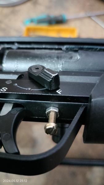 He realizado el brico del disparador con tornillo prisionero m3x10 con contratuerca y no molesta nada para disparar.