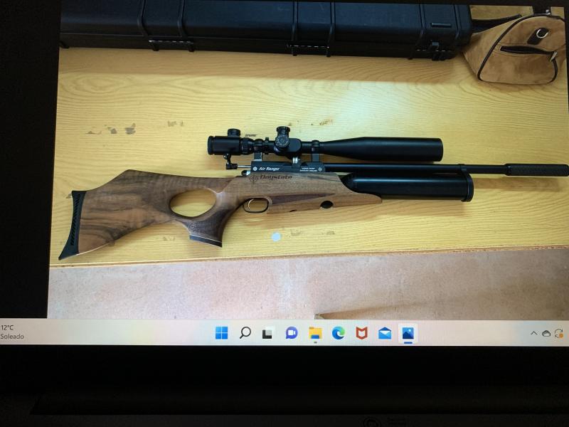 No me acuerdo del modelo, pero subo unas fotos de la misma, hago notar que para poder tirar con torreta tipo Bench Rest, se le puso digamos una “suela” para apoyar en la misma, se ve debajo del depósito de aire.