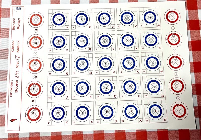 Te dejo unas dianas de esta mañana,campo abierto,soleado y con brisa y rachas ligeras,el campo de tiro está junto al mar y aquí tienes que vivir con el viento.