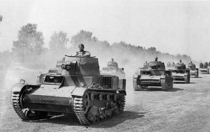 solo comentar que en la batalla de Guadalajara en la guerra de los abuelos, el escuadron de T26 del comandante PAULOV, integramente tripulado por carristas sovieticos, apoyado por la mismisima brigada internacional GARIBALDI, compuesta por italianos y otras UDS españolas, desbarato toda la ofensiva del CTV (CORPORE TUPPE VOLUNTARIE) italiano, completamente mecanizado y provisto de las tanquetas ligeras CV13 (CARRO VELOCE)acabando esta en una desvandada de salvese quie pueda, hasta el estremo de que desde entonces al CTV, se le puso el apodo -Cuando Te Vas-.