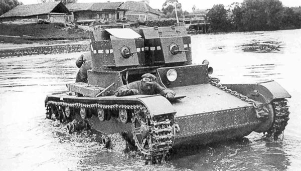 A mediados del 1929, Rusia compra 15 Vickers E de doble torreta, no mucho mas tarde la URSS ya decide que debe pertenecer a su ejercito y por ello fabricarlo en masa, aquí recibe oficialmente la denominación T-26. Empieza entonces un estudio del carro, previa compra de patentes para hacerlo...