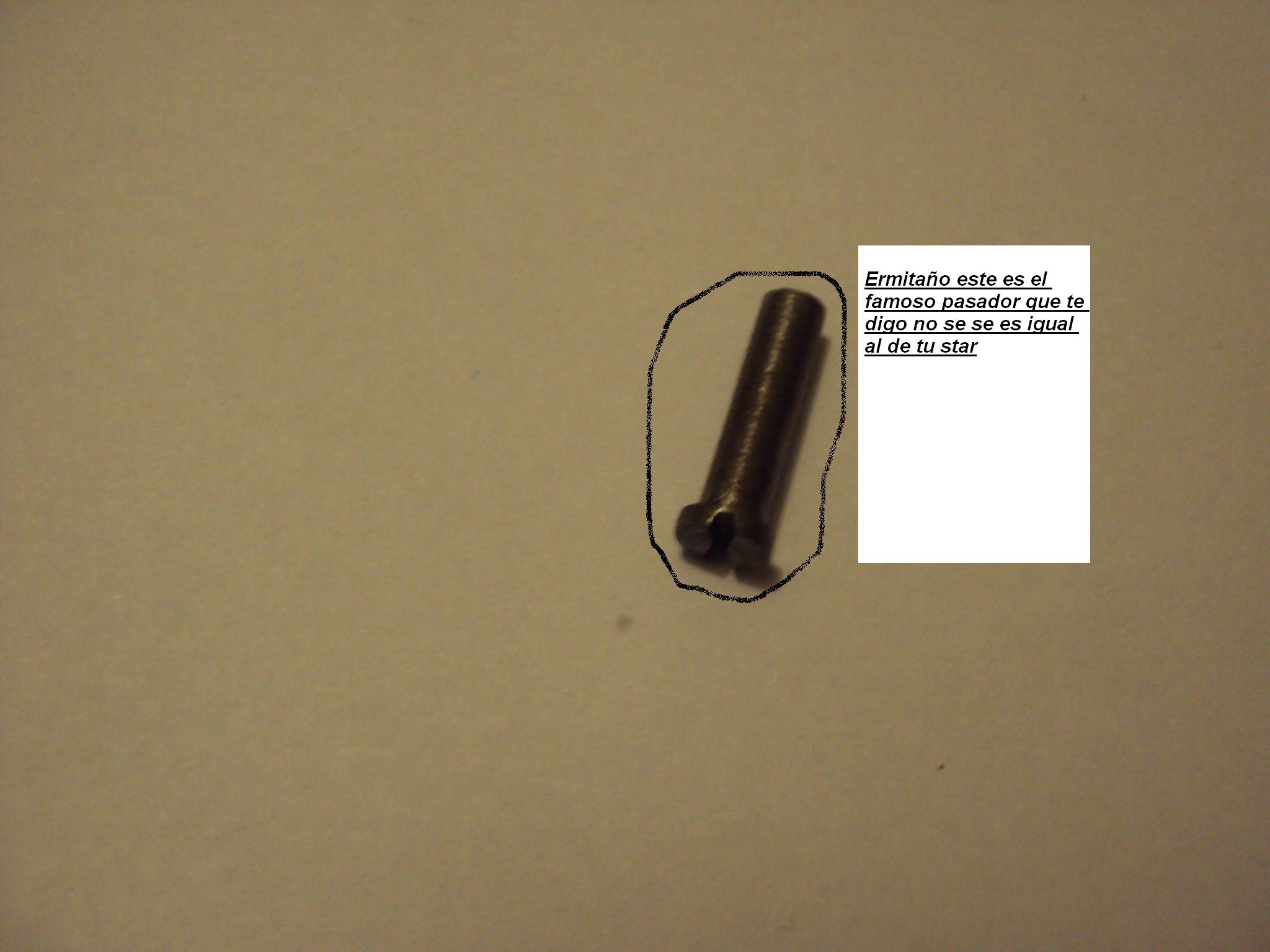 Hola amigos marroyol-sam colt y ermitaño. muy agradesido de ustedes por sacarme del aprieto que tenia con la star. me quedo todo muy claro al detalle,are eso de le le mandare a calsar el pasador en la tetilla de la corredera, la verdad que mirandolo de la forma que ustedes me ilustraron al pareser no cumple mayor funcion ese pasador, me quedo tranquilo con mi jugetito jajajajaja... mis amigos y digo "amigos" por que hasi lo siento quedo muy agradecido de ustedes,espero no perder contacto con ustedes,y cualquier cosita que necesiten por aca en chile cuenten con este servidor.