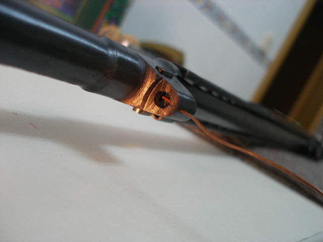 Os pongo una foto de detalle: mirad que el seguro está puesto, es una pieza oscilante que simplemente impide accionar hacia atrás el gatillo pues toca en la parte posterior de éste.
