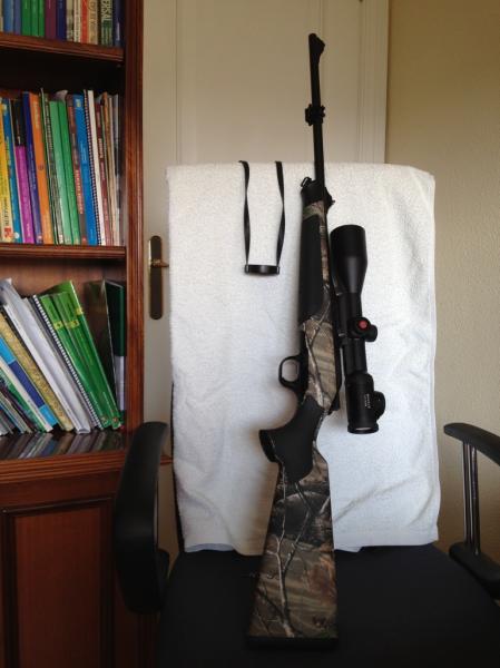 Mi Blaser R8 en calibre .300WSM, con una buena mira Zeiss y correa original Blaser de neopreno. Ya sé que la palabra "Blaser" tiene muchos detractores, pero... para mi es una máquina fantástica. La fotografía la tomé este invierno pasado en una batida en mi coto, en el Pirineo aragonés, en un puesto de absoluto lujo. Saludos,