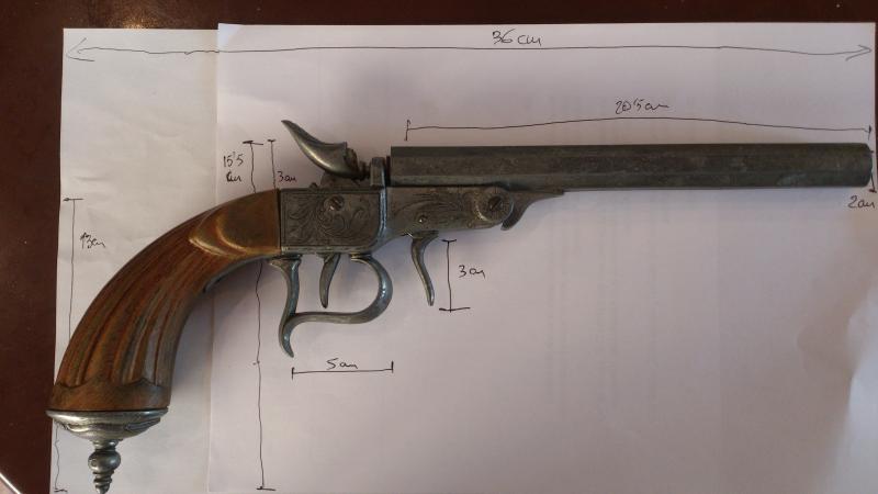 No quisiera ser agorero,pero me parece que es una reproduccion de un arma de salon fabricada en zamak.
