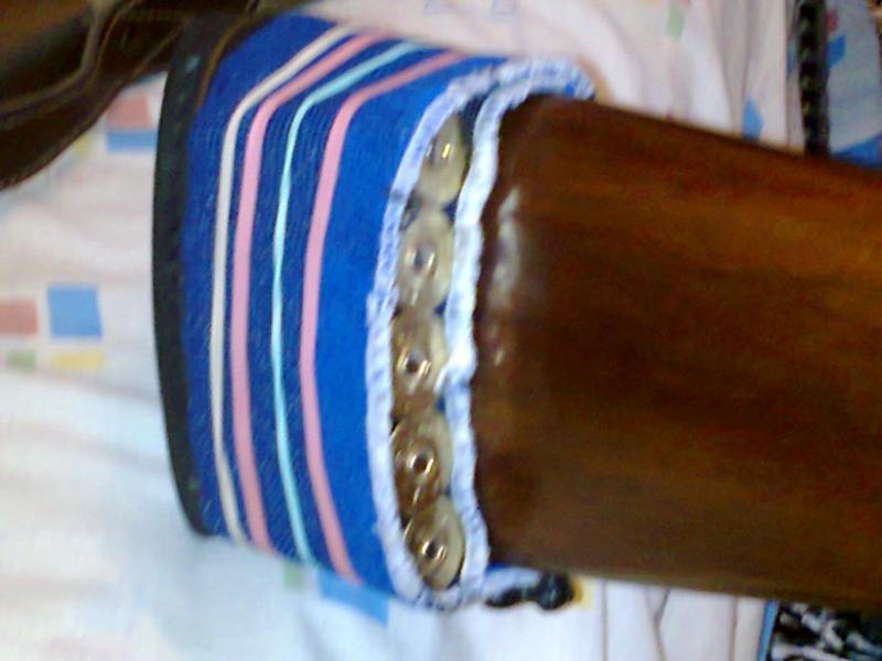 codera ortopédica de los chinos (qué gran fuente de suministros son estos orientales) vuelta del reves interiormente alrededor de la culata para sujetar 5 cartuchos (no llevo tope) y gomas elásticas a su alrededor para "afianzar" la municion y que no se mueva (comprobado) coste??? creo que fueron 1 o 2 e.