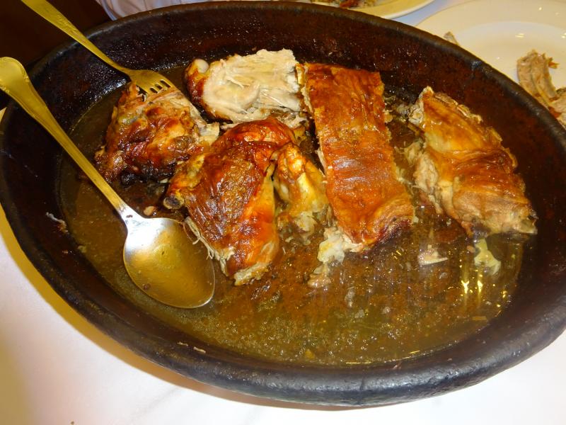 Lechazo al horno, un poco tieso y con poca salsa, un poco seco tambien, hemos dejado casi la mitad de la generosa ración.