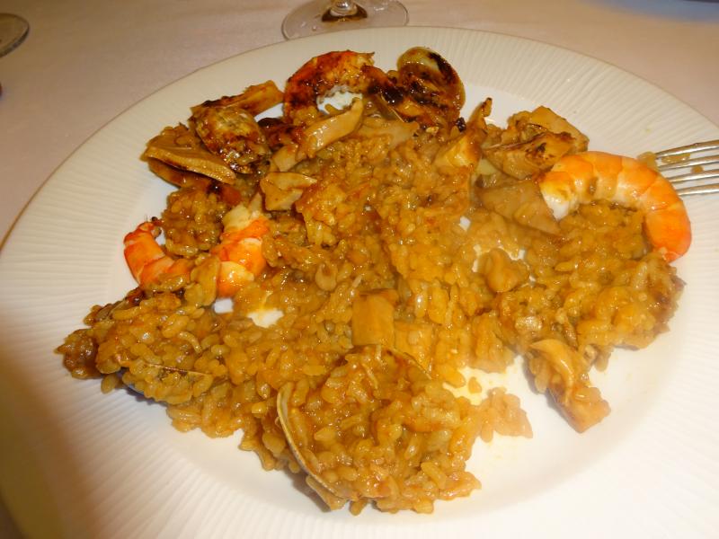 Arroz con marisco al horno, el arroz un poco duro y bastante seco, no me ha gustado.