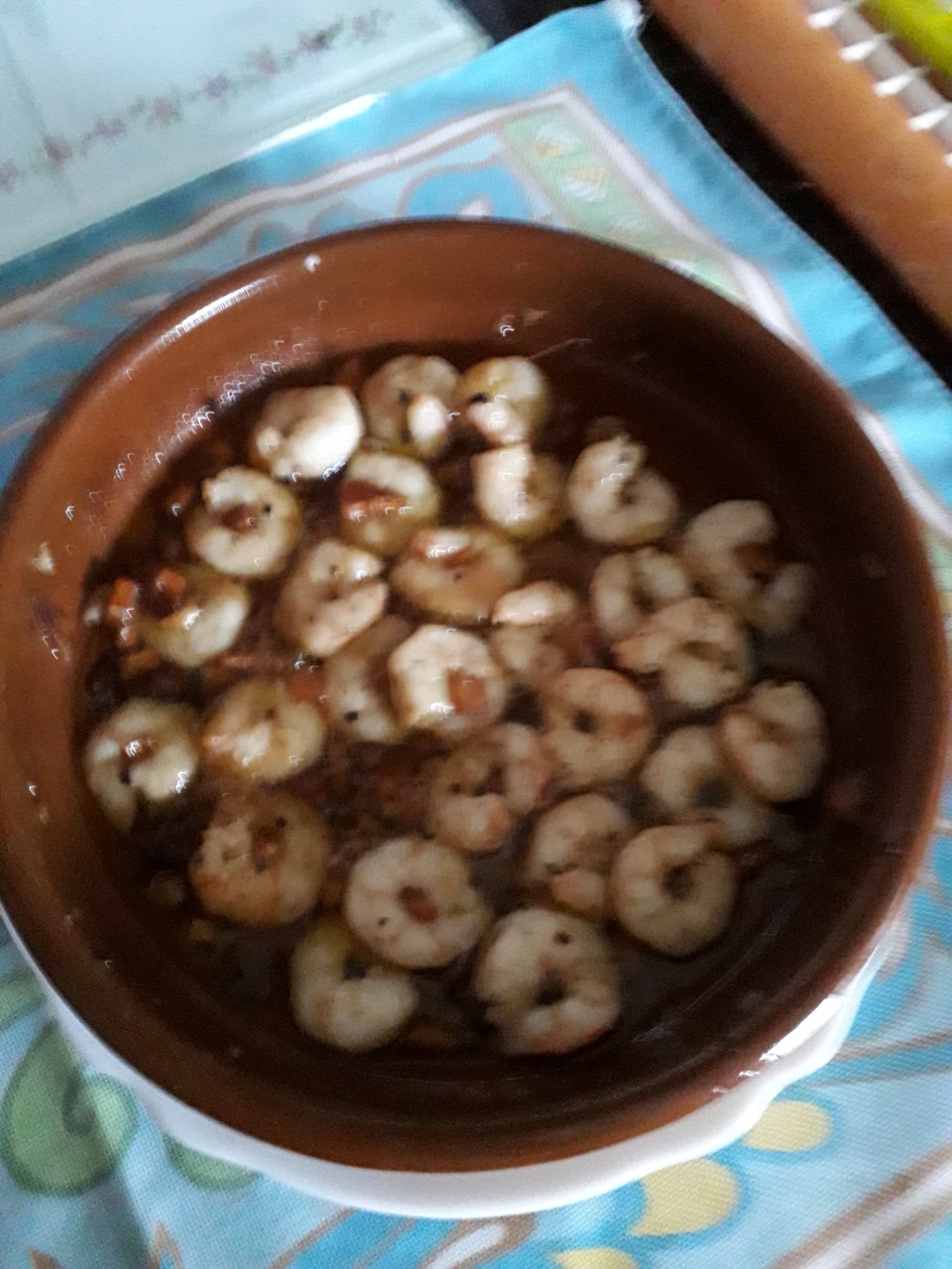 He distribuido las gambas en tres apartijos: Sopa de gambas. Gambas cocidas y Gambas al ajillo (sin guindilla, por aquello de las almorranas)