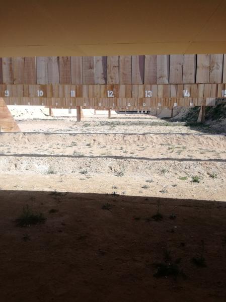Con el Gibbs me estoy quitando las dudas de encima a fuerza de pegar tiros y ganar confianza.Aunque solo a entrado un diez me he encontrado muy a gusto y excepto dos ochos que he visto según soltaba el disparo el resto han sido nueves algunos tocando el diez.Para una competición sería la peor diana posible,91 puntos descontando un nueve, pero en un entrenamiento es una diana aceptable porque me salían los disparos limpios y con buenas sensaciones.Os dejo foto de la diana y del campo de tiro.Un saludo.