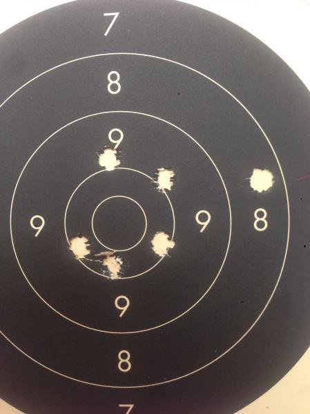 Esta carga me ha dado el blanco de la foto. No es gran cosa, pero por lo menos es regular (el impacto de la derecha es fallo del indio)...por cierto, molan mis parches eh