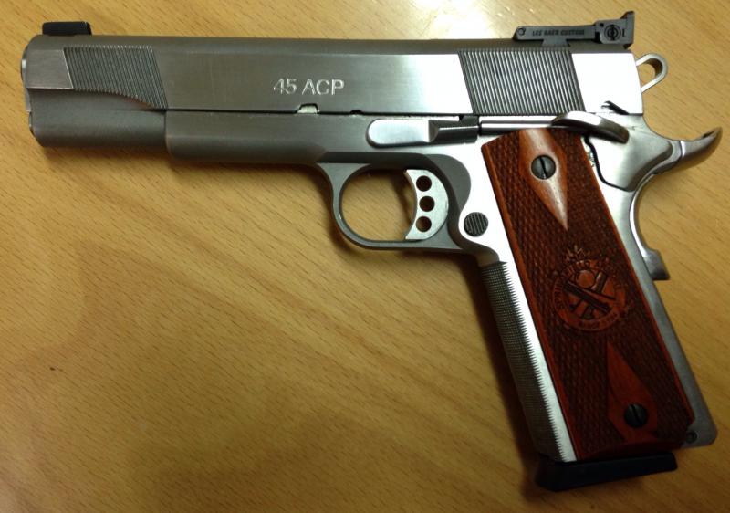 Una es Les Baer Custom Concept V, .45ACP 5". Le puse unas maravillosas cachas de madera de cocobolo.