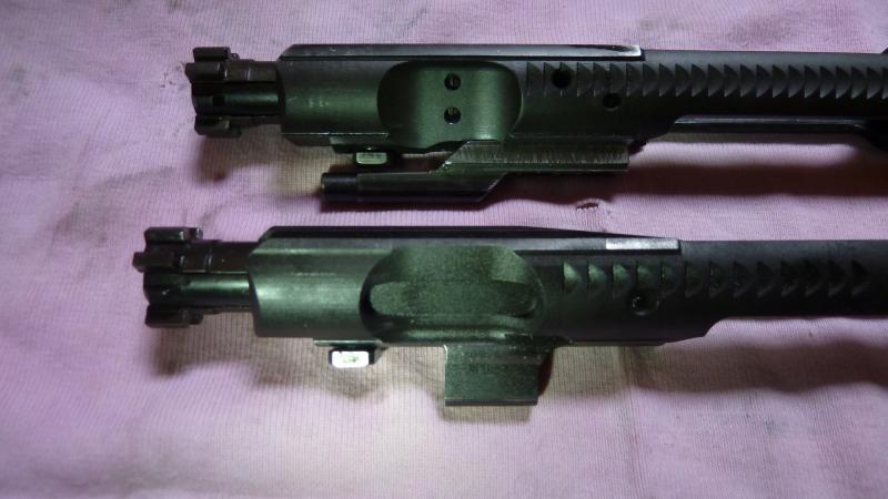 Como podéis ver, y los que tengáis un Kit de pistón ya sabéis de que va, el carrier del Proarms pasa a ser solido de una sola pieza, suprimiendo la Gaskey. Respecto los acabados, no tengo el suficiente ojo como para ver diferencias respecto el carrier del DPMS que hay al lado, a excepción de que se trata de un carrier puramente semi automático.