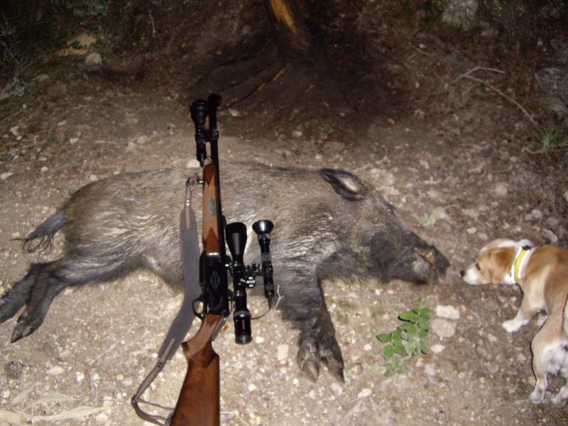Yo este finde estoy más contento que nada, nos dieron un permiso de esperas por daños para este més en uno de los cotos, así que este viernes he podido probar por fin el laser que le hice al mauser para las esperas nocturnas, y el visor que lo llevo ahí puesto como buenamente he podido con cinta aislante y unos suplementos de madera (a ver si termino el PFC y le hago unas monturas decentes). Pero bueno, ¡Funciona!, y a la perfección, el jabalí se quedó en el sitio. Con el visor se veía perfectamente, a pesar de la escasa luz que daba la luna creciente, y el laser para indicar el punto de impacto de noche, es estupendo, ves el punto rojo encima del bicho a través del visor.