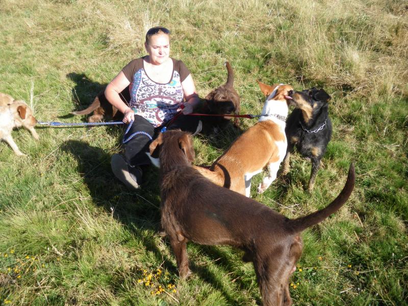 La domadora en plena faena, el perrillo al que me refiero es el del pelo color higado, que esta en primer plano.
