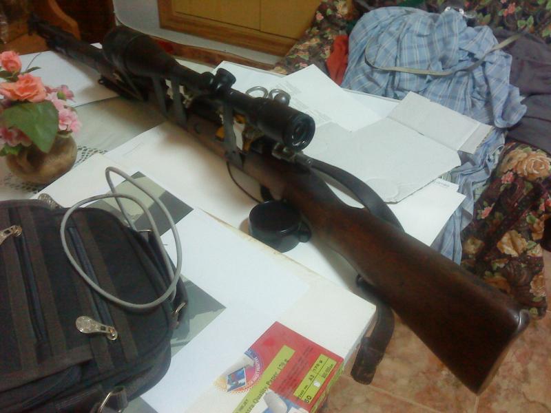 Lo del visor con cinta aislante es porque mi rifle es un mauser militar (igual que el que me tocó en el sorteo), por lo que no lleva ranuras para colocar unas monturas, además con cerrojo recto. (y me niego a modificarlo, es un rifle historico y no le haré nada que no sea reversible).