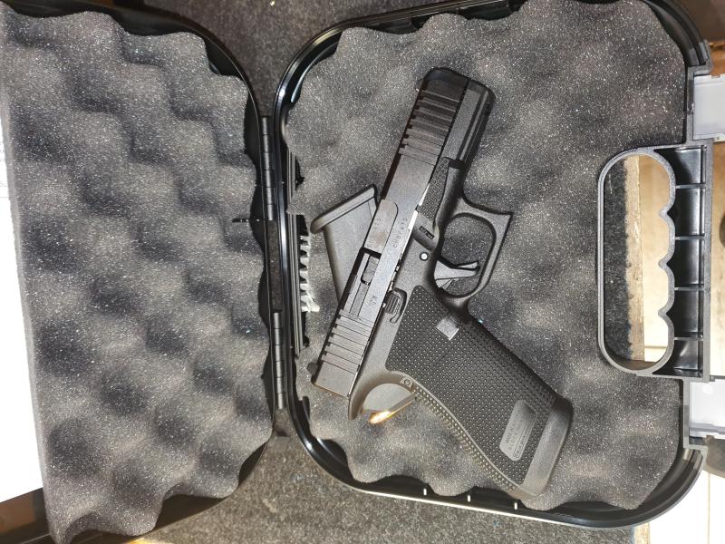 Finalmente ha llegado el día de recoger la ansiada Glock 45, tal como he salido de la armería me he ido a la galería a tirar la primera caja de munición. He de decir que me ha sorprendido gratamente, pues después de haber leído mil una críticas sobre las glock esperaba algo "tosco" en cuanto a precisión y la verdad es que haciendo rondas de 5 disparos algo apresurados (cerraban en 20 minutos tras mi llegada) la cosa no ha ido ni tan mal. El próximo día con calma me llevaré también la cz75 para poder comparar un poco mejor.